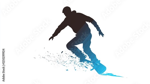 © dong, Naklejka premium Snowboarder in Blue and Black on White Background: Simple Flat Design for Winter Sports Poster