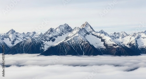 Obraz premium Snowcapped Mountain: Range Above Cloudscape Winter Landscape