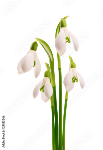 Fototapeta premium Snowdrop flowers isolated on white background. Beautiful spring flowers.