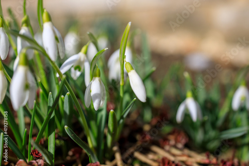 Fototapeta premium Snowdrop flowers, soft focus, perfect for postcard