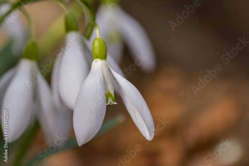 Fototapeta premium Snowdrop or common snowdrop (Galanthus nivalis) flowers