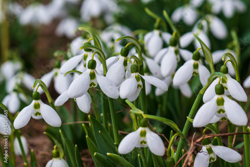 © Anna, Fototapeta premium Snowdrops, first spring flower in a sun light. selective focus.