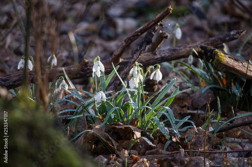 © were, Fototapeta premium Snowdrops grow between foliage in the forest