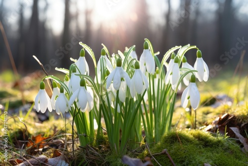 Obraz premium Snowdrops Growing in the Grass