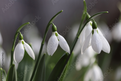 Fototapeta premium Snowdrops in spring close up