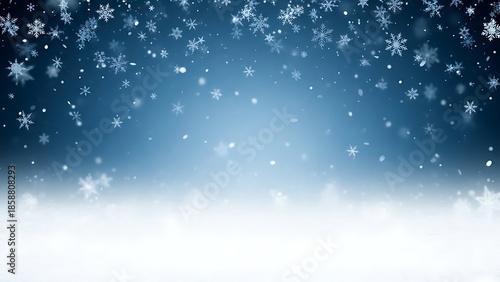 Fototapeta premium Snowfall background texture with dark blue gradient and falling snowflakes