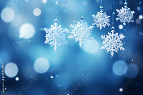 © D, Naklejka premium Snowfall Blue Background - Festive Christmas and New Year Snowflakes - Stock Image