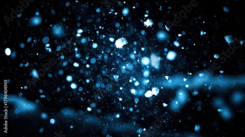 © Chatchanan, Obraz premium Snowfall dance winter wonderland abstract visuals dark background close-up ethereal beauty