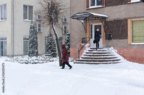 Fototapeta premium Snowfall in the city streets