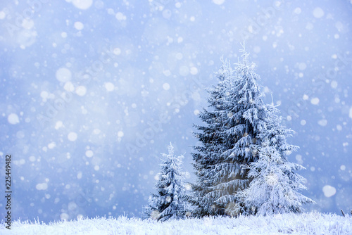 Fototapeta premium Snowfall in the winter mountains