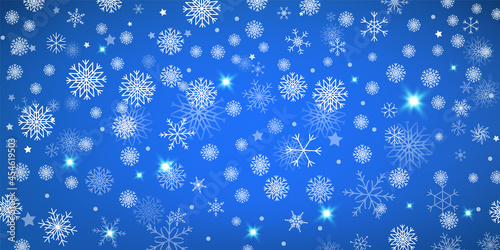 © elialady, Fototapeta premium Snowfall Isolated on Holiday Blue Background in Realistic Style. Snowflake Wallpaper. Vector Illustration..