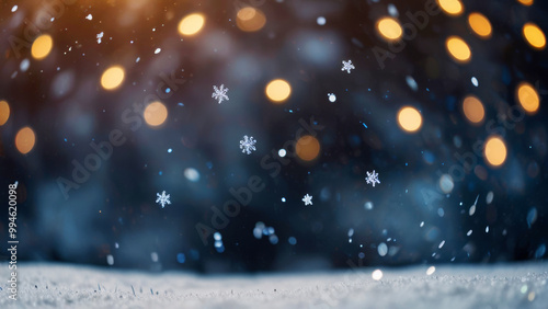 © Volgastudio, Obraz premium Snowfall with blurred bokeh background with lights in a winter night, as a background for design