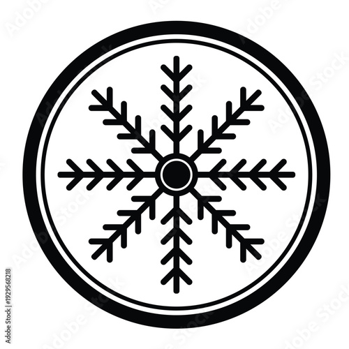 Fototapeta premium Snowflake circle icon black outline badge on transparent background