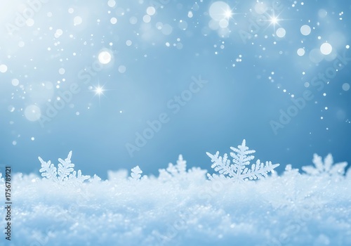 © Dostain, Naklejka premium Snowflake On Natural Snowdrift Close Up, Christmas And Winter Background