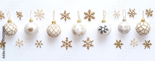 © ShadowHero, Fototapeta premium Snowflakes And Christmas Tree Ornaments In Blue Glow