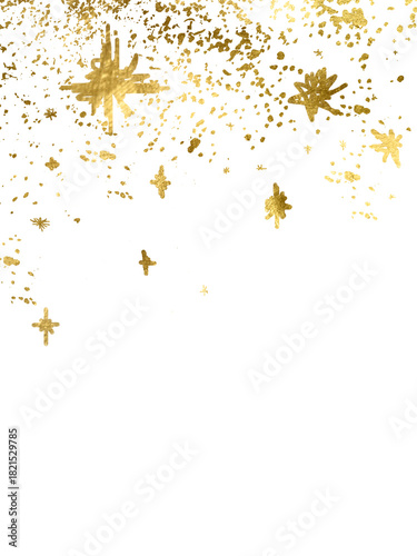 © AnaNas, Obraz premium Snowflakes and stars border the isolated PNG illustration.Transparent PNG. Golden snowfall with sparkling snowflakes, a frosty glow, gold particles, and a magical winter overlay for holiday projects.