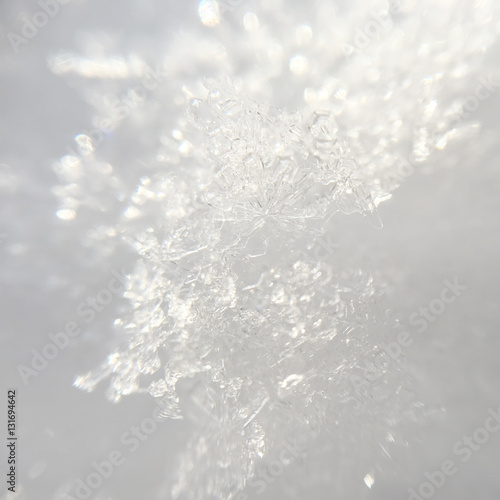 Fototapeta premium snowflakes close-up on white glitter bokeh background