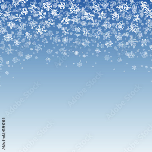 © amovitania, Fototapeta premium Snowflakes Falling on Blue Background