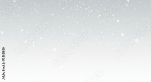 Fototapeta premium Snowflakes falling on soft grey background in winter scene