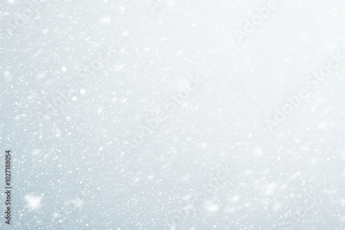 Fototapeta premium Snowflakes falling softly on a textured, light background.
