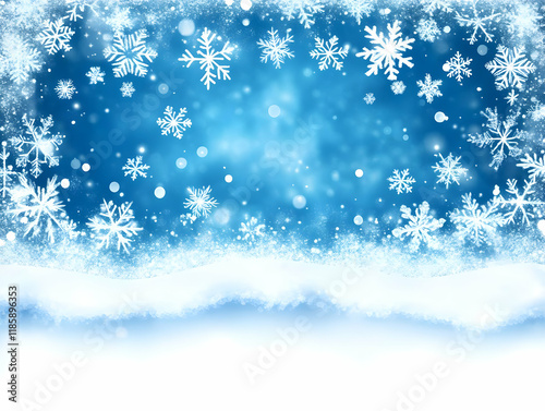 © Siasart, Naklejka premium Snowflakes Gently Fall on a Wintry, Snowy Landscape