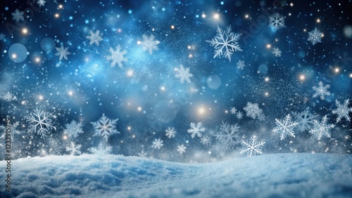 © Praphunsak, Naklejka premium Snowflakes gently falling from a starry night sky