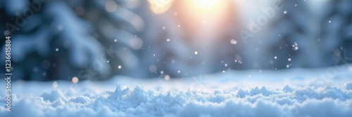 Fototapeta premium Snowflakes gently falling on a serene landscape, wintry atmosphere,...