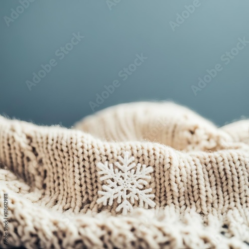 Fototapeta premium Snowflakes gently resting on a wool sweater, warm textures in cold air