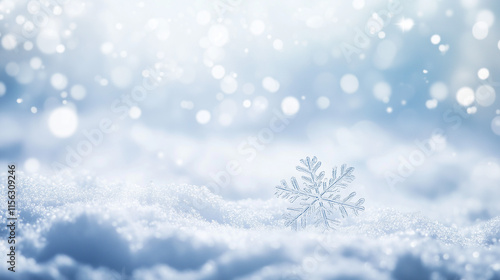 © Digital Sensei, Naklejka premium Snowflakes on snow for Christmas and winter background