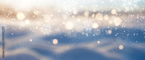 © bao, Obraz premium Snowflakes On Snow With Bokeh Of Christmas Lights