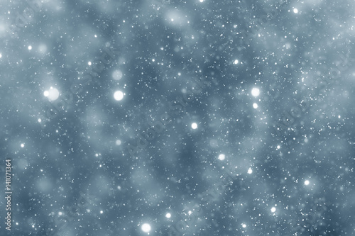 © Bokehstore, Obraz premium Snowflakes particles and bokeh or glitter lights on silver background. Christmas abstract template