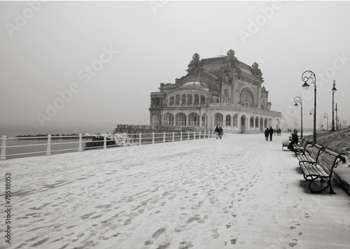 © elephotos, Obraz premium Snowing on the shore at the Black Sea