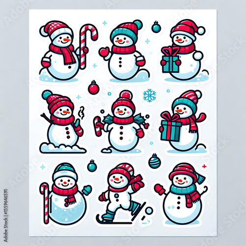 Fototapeta premium Snowman Holiday Sticker Sheet – Flat Vector
