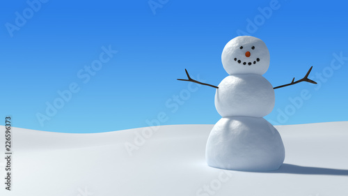 © josephsjacobs, Naklejka premium Snowman in snowy field under a clear blue sky