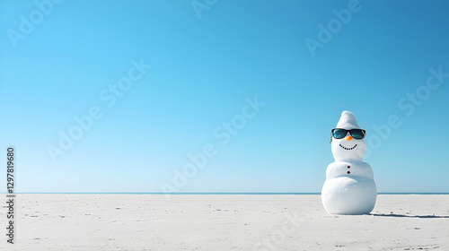 © julio, Obraz premium Snowman Wearing Sunglasses Standing on Snowy Ground Under Bright Blue Sky
