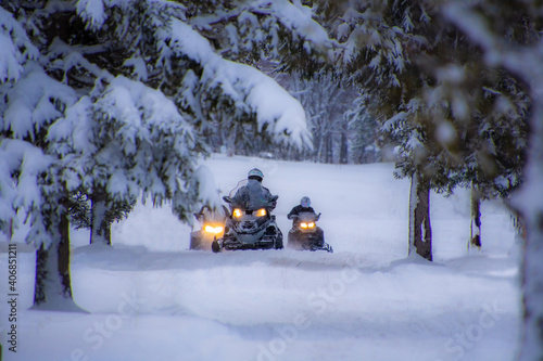 Fototapeta premium Snowmobile in the Canadian winter