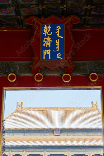 Fototapeta premium Snowscape of ancient architecture in the Forbidden City, Beijing, China.