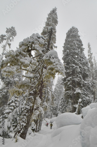 Naklejka premium Snowshoeing in Joffre lakes provincial park