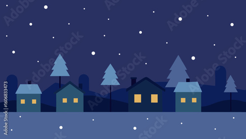 © Prodip, Fototapeta premium snowstorm in small town with blurred lights