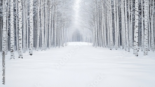 Fototapeta premium Snowy birch forest path, winter landscape, serene nature scene, ideal for...