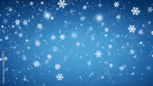 Fototapeta premium Snowy blue background with falling snowflakes. Christmas winter snowfall with...