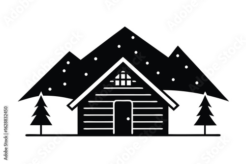 © Pallobroy, Naklejka premium snowy cabin vector icon