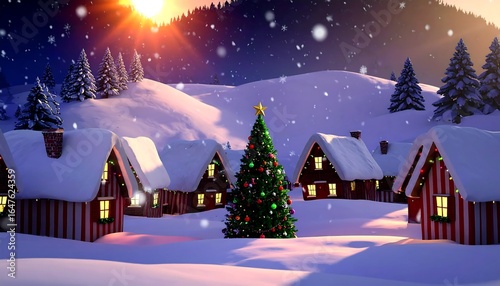 © Jonatan, Naklejka premium Snowy Christmas village at sunrise