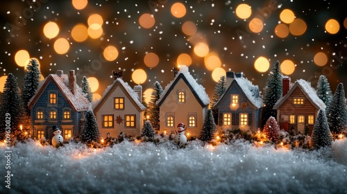 © Lemdah, Fototapeta premium Snowy Christmas Village Lights