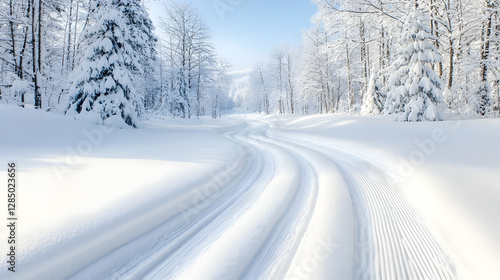 © MAKASIHMAS SIDNEY, Obraz premium Snowy cross-country ski trail in winter forest