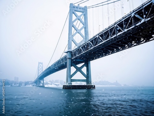 © AI ARLI, Fototapeta premium Snowy Day Under the Bay Bridge