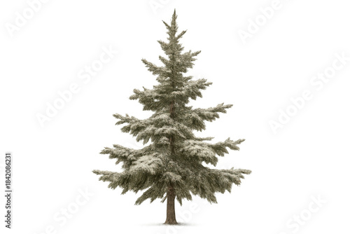 Fototapeta premium Snowy evergreen tree with frosted branches, winter pine for christmas and seasonal holiday design, transparent background