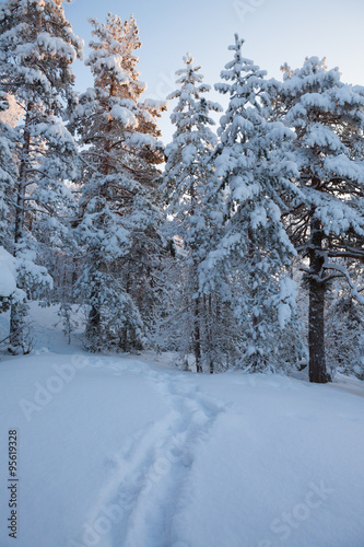 © Juhku, Fototapeta premium Snowy forest at winter
