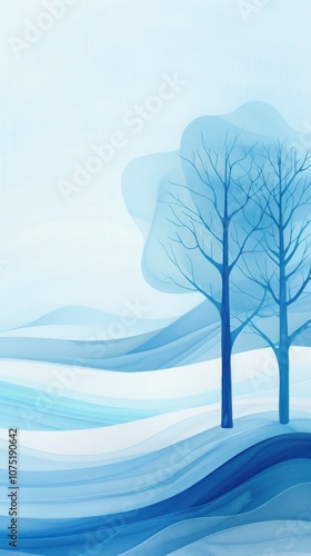 © Anna, Fototapeta premium Snowy forest edge with "2025" glowing in the distance, a clean white sky, and space for text in the upper half