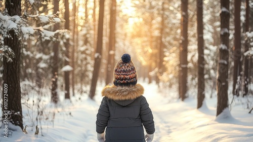 © ellisa_studio, Naklejka premium Snowy Forest Hike